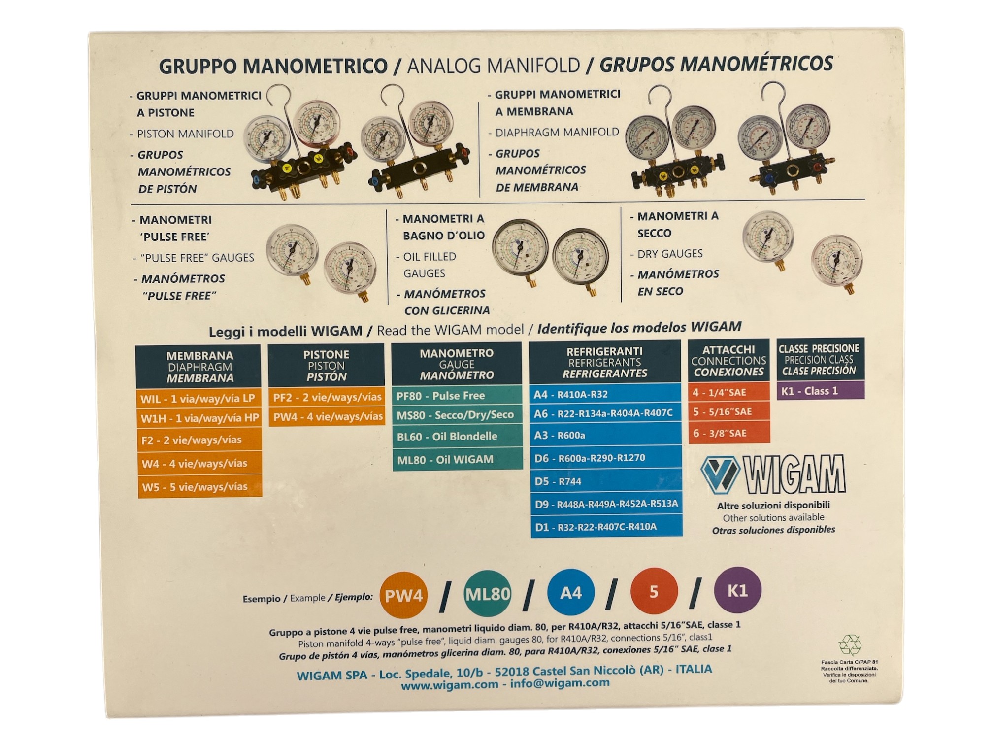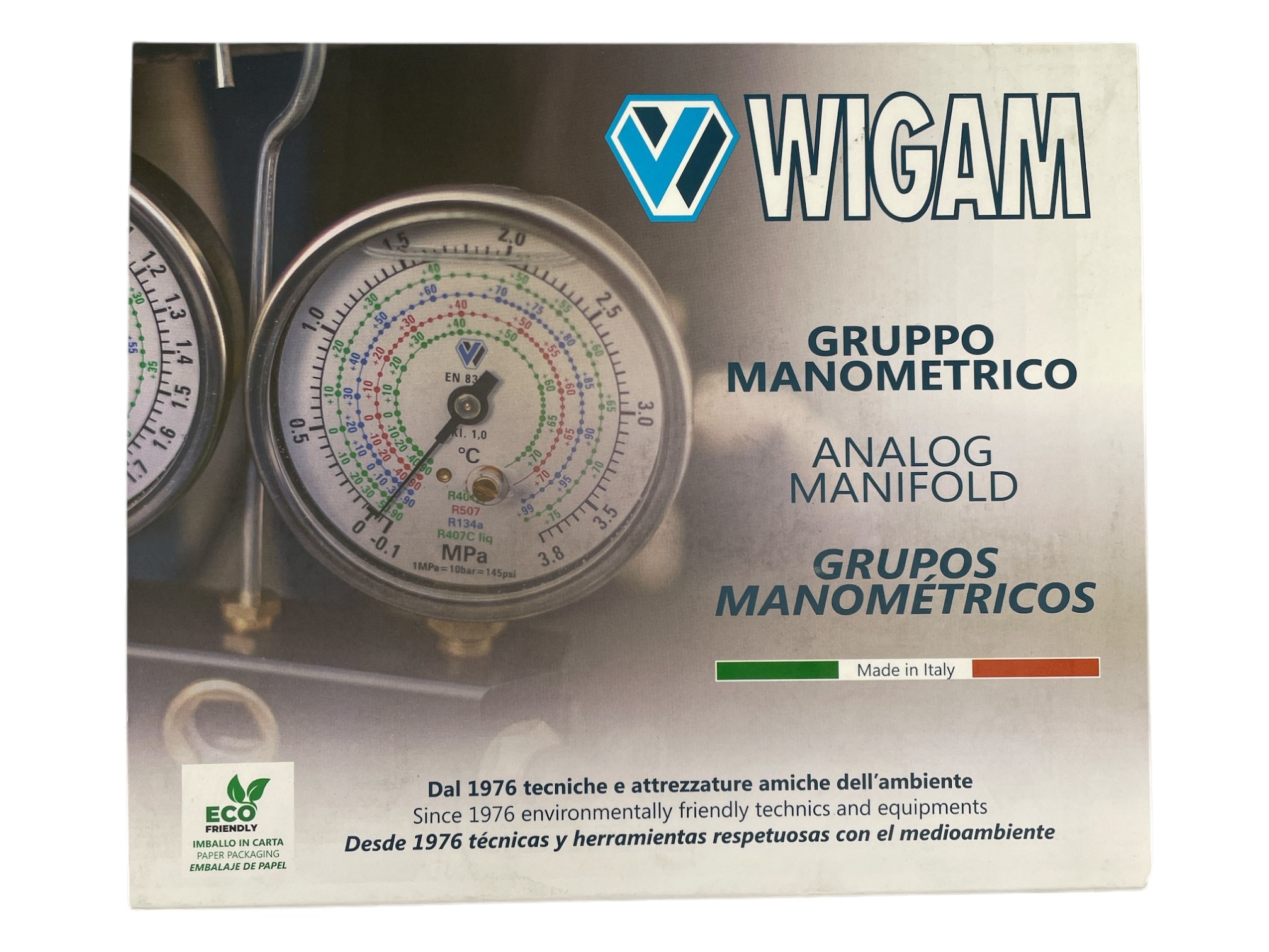 Manometer Wigam 4-vägs R32; R410A (3x5/16'' + 1x3/8'' SAE) utan slangar